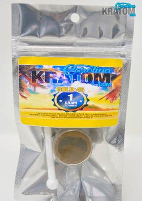 Carolina Kratom's Gold 45 extract comes in a 1 gram size container and a small 100mg scoop is included. This Kratom extract is conveniently packaged. For those familiar with Carolina Kratom's Carolina Gold capsules this Gold 45 is its main active ingredient (1/10th of a gram). You'll be sure to find the Gold 45 extract a delight.